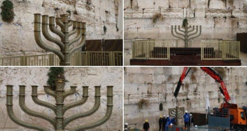 مستوطنون ينصبون شمعدانا في ساحة البراق استعدادا لـ"الحانوكاة"