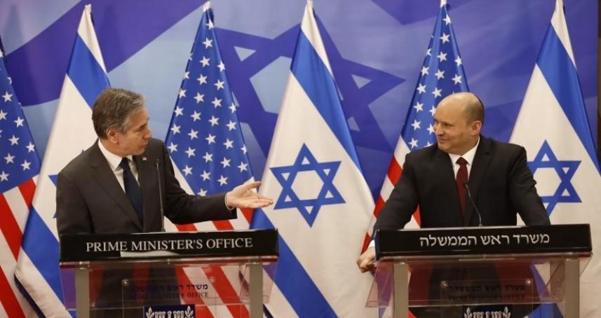 وأكد بلينكن في تصريحات له عقب لقائه رئيس وزراء الاحتلال نفتالي بينيت،  التزام بلاده بأمن الاحتلال وحل الدولتين (فلسطينية وإسرائيلية).