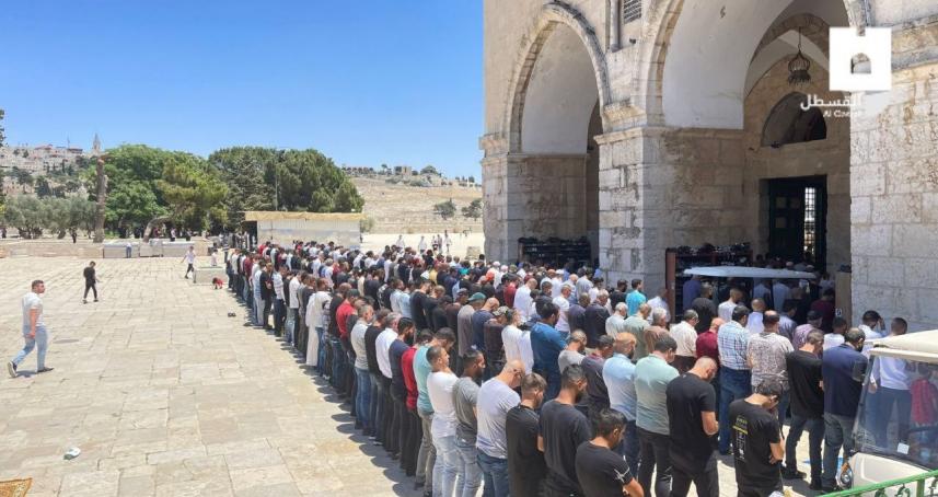 وتوافد المرابطون من أهالي القدس المحتلة والداخل الفلسطيني المحتل عام 1948، والضفة الغربية إلى المسجد الأقصى منذ ساعات الصباح، رغم عراقيل الاحتلال أمام وصولهم للمسجد.