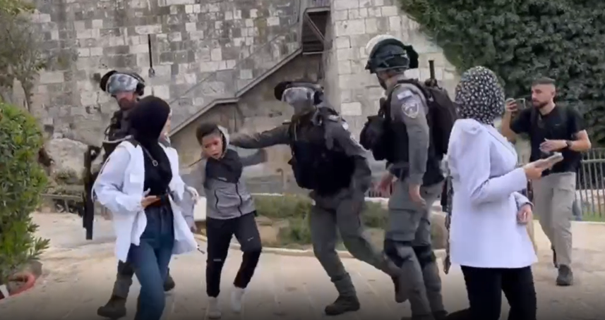 وذكر أن القوات التي ما زالت منتشرة في ساحات الأقصى والبلدة القديمة بكثافة، اعتقلت شبان واقتادتهم إلى جهة غير مجهولة بعد الاعتداء عليهم.