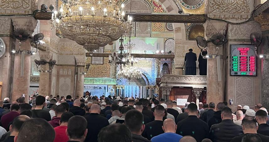 وامتلأت ساحات ومصليات المسجد بالمصلين القادمين من قرى وبلدات القدس المحتلة، والداخل الفلسطيني المحتل والضفة الغربية.
