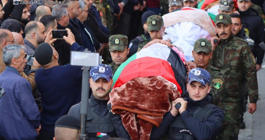 وشارك آلاف الفلسطينيين في التشييع، وسط أجواء من الحزن وهتافات منددة بالاحتلال الإسرائيلي.