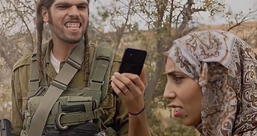 وتُظهر الصورة مستوطنًا مسلحًا يحمل هاتفًا محمولًا، تمرّ بجانبه امرأة فلسطينية تبدو على محيّاها علامات التعب والإنهاك والخوف. ويبدو المستوطن ساخرًا منها، وهو يصوّرها بهاتفه في مشهد ينمّ عن استهزاء واضح بمعاناتها.