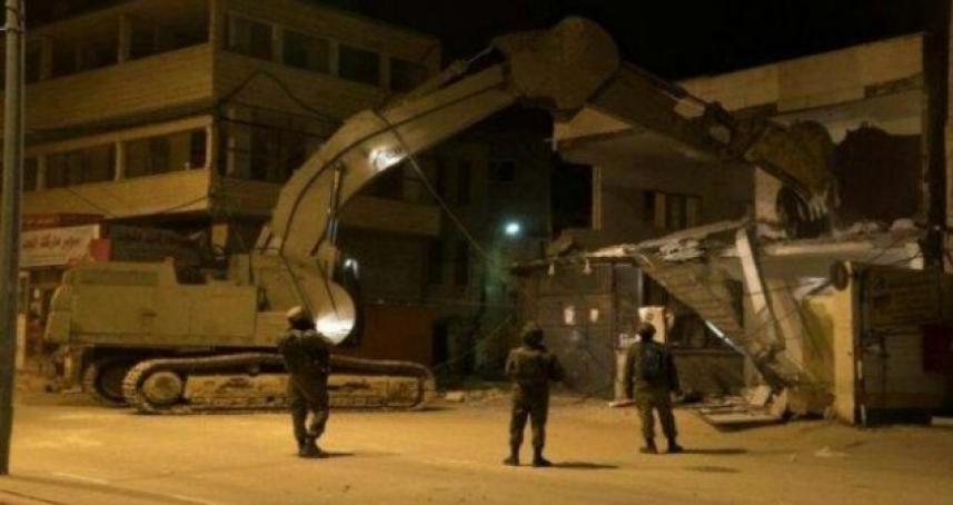 وأفاد شهود عيان بأن قوات الاحتلال شرعت بهدم نحو 30 منشأة بعد إغلاق المنطقة، منها محل للخضار يعود لعائلة جابر، ومحطة وقود ومغسلة سيارات، الأمر الذي تسبب بأزمة مرورية خانقة.