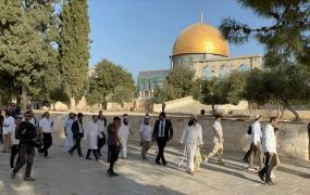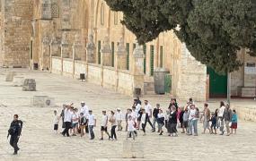 القدس - نبـأ: اقتحمت أفواج المستوطنين المتطرفين، صباح الأحد 1 اكتوبر 2023، المسجد الأقصى المبارك، من جهة باب المغاربة بحراسة مشددة من شرطة الاحتلال الإسرائيلي، في ثاني أيام ما يسمى "عيد العرش" اليهودي