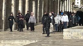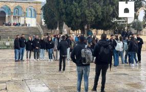 نبأ-القدس: اقتحمت مجموعة من المستوطنين، صباح اليوم الثلاثاء، المسجد الأقصى، بحماية مشددة من شرطة الاحتلال الإسرائيلي. وأفادت مصادر مقدسيّة، بأنّ عشرات المستوطنين بينهم طلاب معاهد توراتية اقتحموا