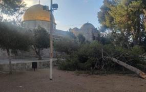 بالصور سقوط إحدى أشجار المسجد الأقصى قرب باب الحديد