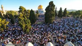 أدى عشرات الآلاف، صلاة الجمعة، في يوم عرفة، في المسجد الأقصى المبارك، رغم الإجراءات العسكرية المشددة التي فرضتها سلطات الاحتلال الإسرائيلي على أبواب ومداخل البلدة القديمة في القدس المحتلة. وقدرت دا