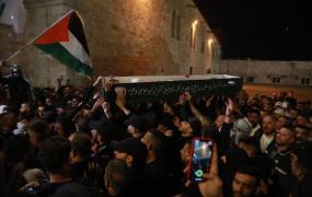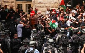 قمعت قوات الاحتلال الإسرائيلي مئات المشاركين في تشييع الزميلة شيرين أبو عاقلة في مدينة القدس المحتلة. واضطر المشيعون لإعادة إدخال جثمان أبو عاقلة إلى المستشفى بعد اعتداء قوات الاحتلال على مسيرة الت