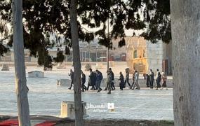 اقتحم مستوطنون متطرفون، صباح الأحد، المسجد الأقصى المبارك، من جهة باب المغاربة بحماية مشددة من شرطة الاحتلال الإسرائيلي. وشددت قوات الاحتلال من إجراءاتها في القدس القديمة وعند أبواب المسجد الأقصى،