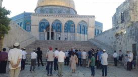 أدى عشرات الآلاف صلاة الجمعة في المسجد الأقصى المبارك، رغم الإجراءات العسكرية المشددة التي فرضتها قوات الاحتلال الإسرائيلي على أبواب المسجد، ومداخل البلدة القديمة في القدس المحتلة. وقدرت دائرة الأو