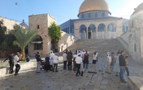 نبأ-القدس: اقتحم عشرات المستوطنين، صباح اليوم الثلاثاء، ساحات المسجد الأقصى، من جهة باب المغاربة، بحماية مشددة من قوات الاحتلال الإسرائيلي. وأفادت مصادر مقدسيّة، بأنّ "عشرات المستوطنين، اقتحموا