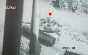 بثت كتائب القسام -الجناح العسكري لحركة المقاومة الإسلامية (حماس)- اليوم الأحد مشاهد من تدمير دبابة إسرائيلية بعبوة شديدة الانفجار شرقي معسكر جباليا شمالي قطاع غزة. وحسب مقطع الكتائب، فإن استهدافها