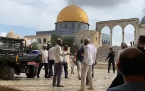 ضبط حراس المسجد الأقصى مستوطنين اثنين تسللا إلى باحة المسجد بعد صلاة الجمعة، وأديا طقوسا تلمودية. وأظهر مقطع فيديو شرطة الاحتلال الإسرائيلي وهي تخرج المستوطنَين من ساحات المسجد وكانا يرتديان زي الم