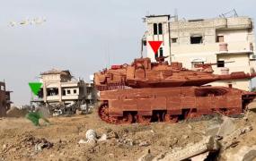 تداول مغردون على مواقع التواصل الاجتماعي بشكل واسع مقطع فيديو بثته كتائب عز الدين القسام الجناح العسكري لحركة المقاومة الإسلامية (حماس) يظهر استهداف دبابتي ميركافا إسرائيليتين في مخيم جباليا شمال قطاع