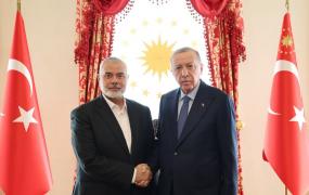 التقى الرئيس التركي رجب طيب أردوغان اليوم السبت رئيس المكتب السياسي لحركة المقاومة الإسلامية (حماس) إسماعيل هنية والوفد المرافق له، الذي يضم رئيس الحركة في الخارج خالد مشعل. وعقد اللقاء بشكل مغلق ف
