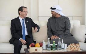 نبأ-ترجمات: قال رئيس الاحتلال الإسرائيلي، يسحاق هرتسوغ، اليوم الإثنين، "سررت بلقاء صديقي الشيخ محمد بن زايد آل نهيان، رئيس الإمارات، وإن اتفاقيات التطبيع الرائعة هي هدية عظيمة لمنطقتنا، سنستمر في ا